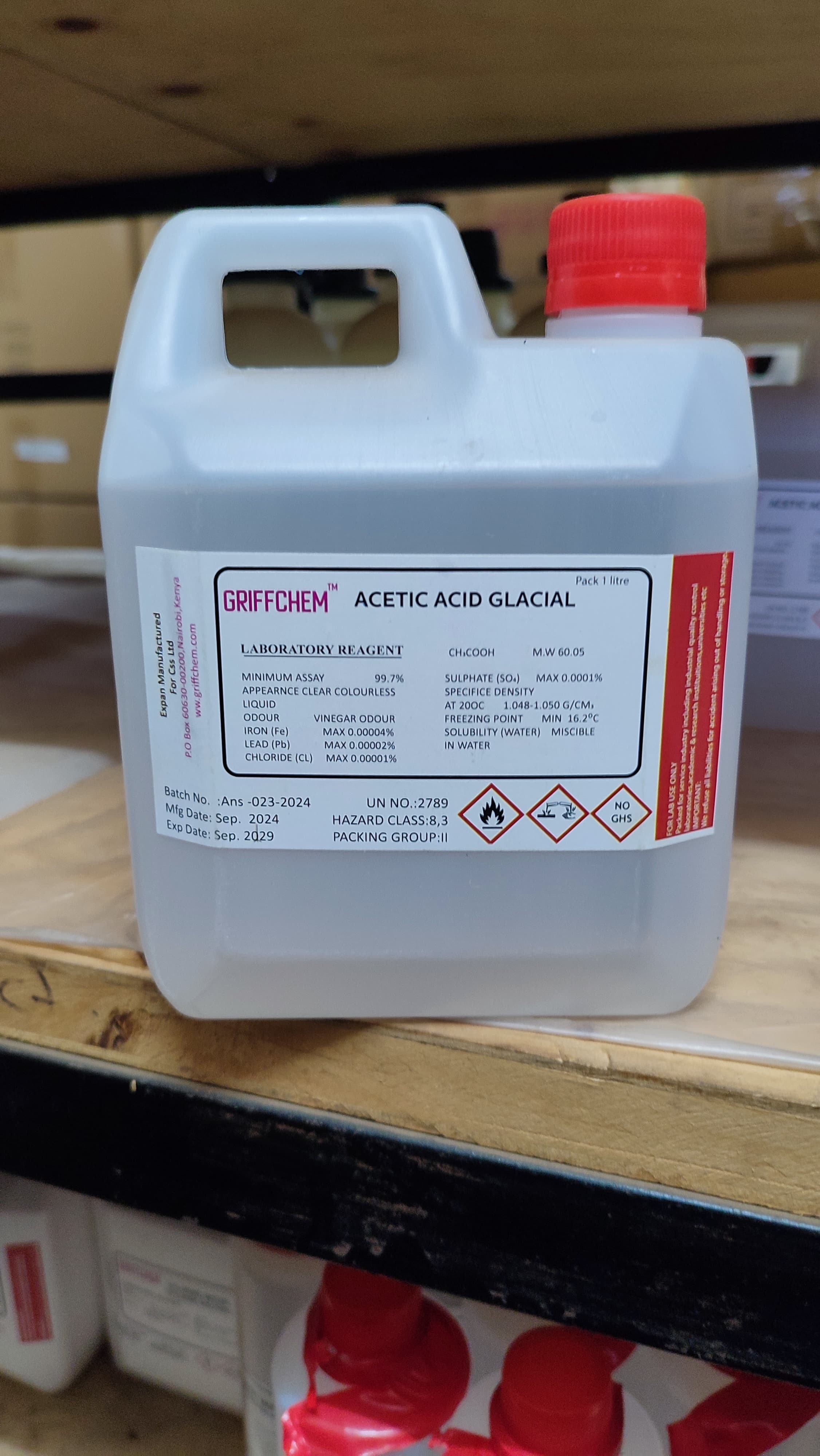 Generic 1 Litre Locally Packed Glacial Acetic Acid Lab Reagent
