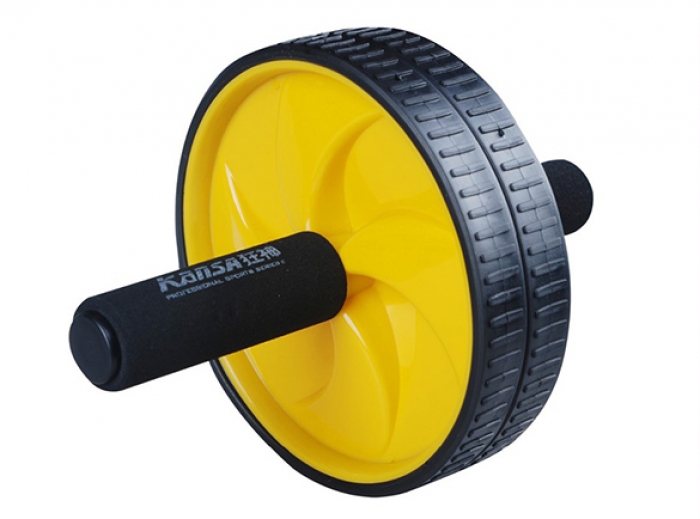 Key Features: Comfortable rubber grips, Double wheel roller for durability and balance, Two molded plastic disks on a steel rod, Training wheel, Strengthens arms and shoulders, Tightens and tones abdominal