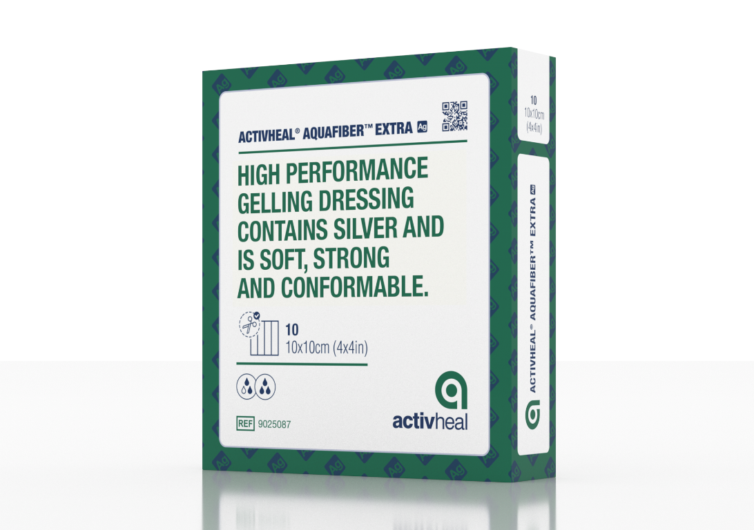 ActivHeal® Aquafiber™ Extra Ag antibacterial dressing can be used in the management of moderate to heavily exuding chronic and acute wounds.
