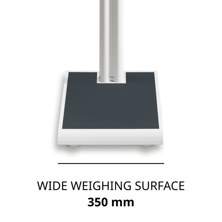 Heavy duty electronic column scale with an extra wide, flat and slip resistant platform.