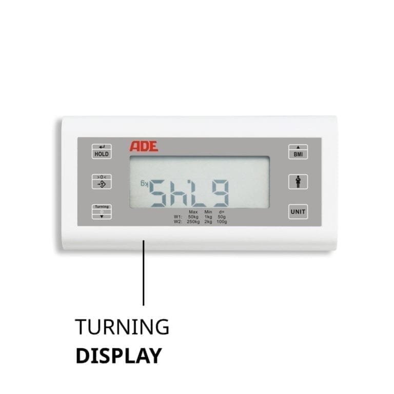 The turnable display allows easy reading from patient and user side. The scale operates by mains and batteries, included as standard.The scale setup is fast and easy: supplied in just two parts and assembled by one set of special screws.