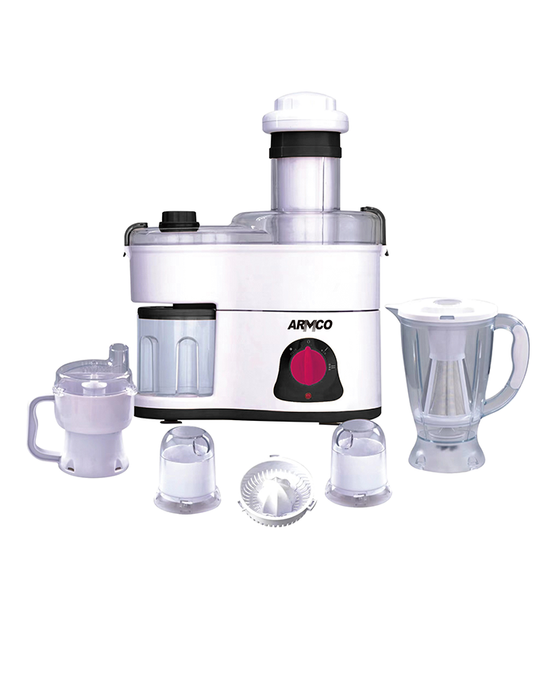 Like all Armco products, our juicers offer reliable efficiency and durability. We offer models with powerful motors that are able to extract juice from a range of fruits and vegetables. The Armco AJB-1000GD food factory has the added benefit of large chutes that let you process whole vegetables and fruits reducing your prep time because you don’t have to pre-cut your produce. The 6 in 1 appliance featuring a juicer, blender, grinder, mincer, shredder, slicer and mill is sure to meet all your food processing needs.