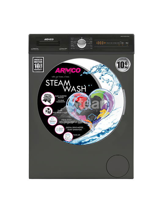 Armco's 2 IN 1, 10KG WASHING + 6 KG DRYING, 62 litre fully automatic steam washer reduces the amount of time it takes to do a load of laundry. With its mega capacity steel drum, you can now wash your batch of clothes, a king size comforter and full set of bedding in a single load and dry them.