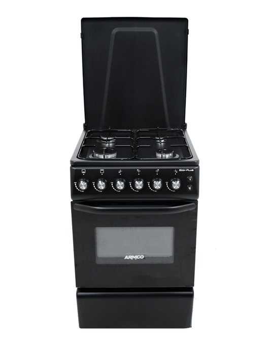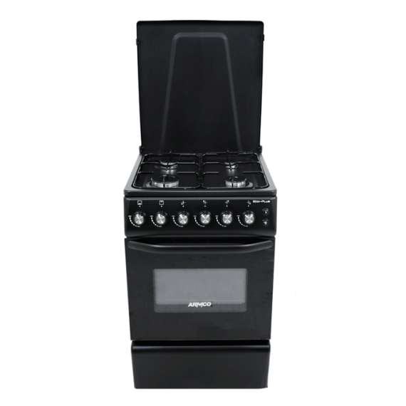 ARMCO GC-F5640PX(BK) - 4Gas, 50X50 Gas Oven+Grill, Rottiserrie, 1 Grid + 1 Tray, Double Glass oven Door, Metal Lid, Button Ignition for Cooktop, Black.
