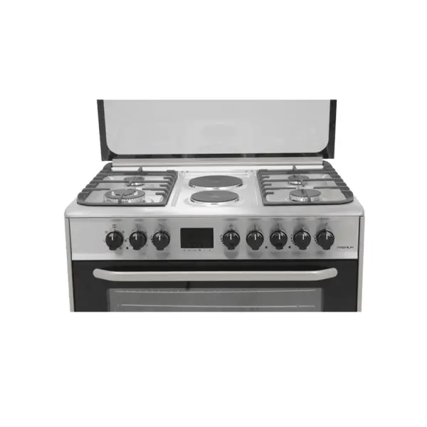 GC-F9642FBT2(SL) 4Gas(1 Wok Sabaf Burner + 1 Small + 2 Medium Sabaf Burners) +2 Electric(1×145 + 1×180), 60cm X 90cm, Rapid Hot Plate, Electric Oven, EU Standard Flame Failure Device, One Touch Auto Ignition, Wide enamelled Matt Colour Pan Support.