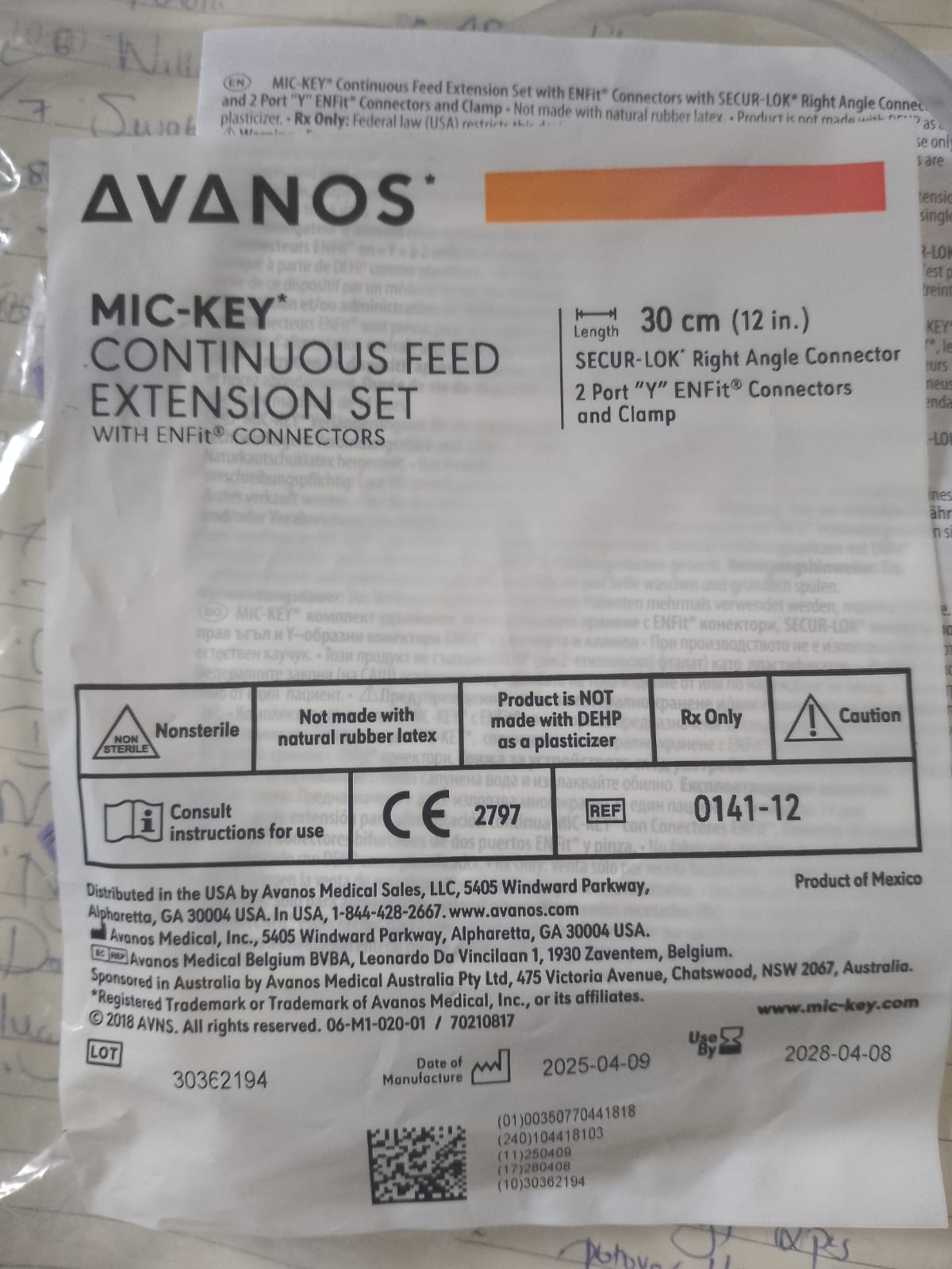 Avanos Mic Key 30cm Continuous Feed Extension Set With ENFit Connector