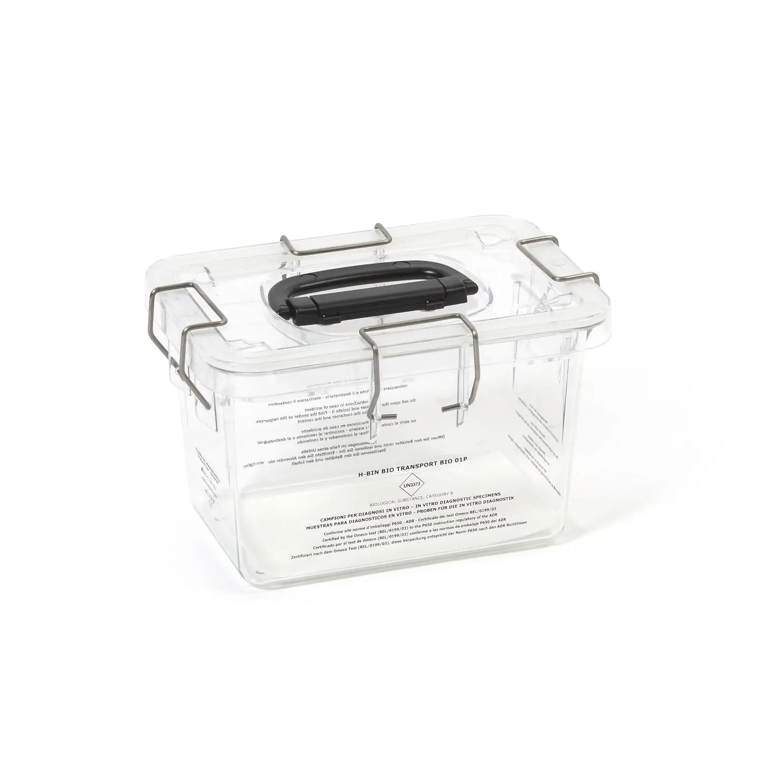 Polycarbonate containers BIO 01P, BIO 02S, BIO 03M and BIO 04L are ideal to transport biological samples in complete safety and compliant with triple packaging standards.