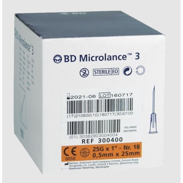 BD Microlance 25G by 25mm 100Pack Thin Wall Needles