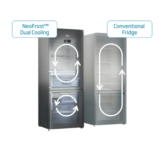 NeoFrost Dual Cooling - It’s difficult to keep the fish in the freezer together with a flavourful cake in the fridge without their odours mixing. NeoFrost Dual Cooling’s separate cooling systems for each compartment.