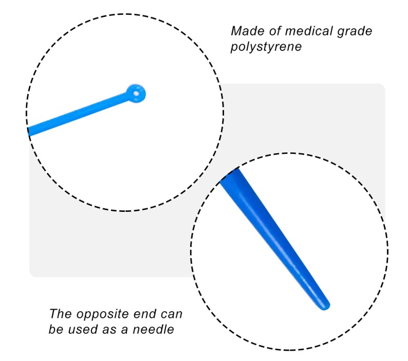 ● Loops available in 1μL and 10μL sizes with strict measurement; the opposite end of each loop can be used as a needle