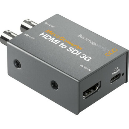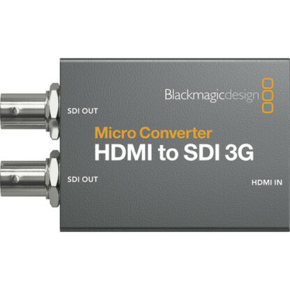 Super compact and rugged, the Micro Converter HDMI to SDI 3G from Blackmagic Design enables you to link HDMI cameras or computers to pro-style SDI (BNC) monitors or components. You can also use several units to extend HDMI over long distances using SDI cable. This compact converter has one HDMI input and two 3G-SD/HD/SDI outputs that can be set to Level A or B. It auto-detects and matches your HDMI input to the SDI output and is compatible with input/output resolutions up to 1080p60. The Micro Converter HDMI to SDI 3G features HDMI timecode support, SDI re-clocking for stability over long cable runs, and support for a wide range of pro broadcast resolutions including cine-style 48 fps.