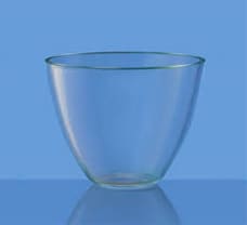 Crucibles are bowl-like containers which can be made of ceramic, glass, iron or some other temperature-resistant material. Glass crucibles are commonly used in laboratories for holding reagents.