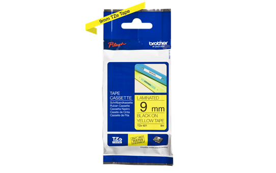 9mm - Gloss Black on Yellow tape for P-touch 8M