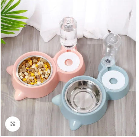 This 2-in-1 pet feeder set is designed to provide water and food to your cat.