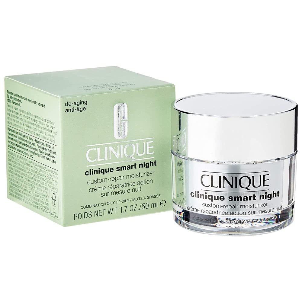 - De-aging, oil-free formula delivers targeted nighttime repair. As you sleep, this innovative moisturizer helps visibly smooth lines and wrinkles, firm, brighten, and support skin’s moisture barrier. Clinique Smart™ hydration technology helps skin attract and retain moisture so you wake up to skin that’s fresh, firm and alive with youth. Non-Acnegenic. Ophthalmologist Tested.