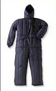 Cold Room Coverall Eskimo Suit for a cold room. Available in medium, large and XL Insulated freezer coverall with suit High density Oxford Nylon waterproof Freezer Suit used in cold storage room Comfort Temperature Rating* +30°F to -50°F Knitted cuffs and elastic rear waist and wrist provide a snug fit to reduce draft