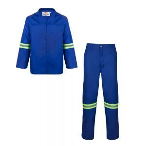 Industrial Work Suit also known as Conti Suit Jacket features include two side chest pockets, coat buttons or zip with single top-stitching throughout. The pants have ½ elasticated waistband or belted, two front pockets, and double-stitched. Available in M, L, XL and XXL Can either be plain or with reflectors Made of 100% cotton material coming in a variety of colors. Mostly made on orders. 50% cotton and 50% polyester material is Ksh 2500