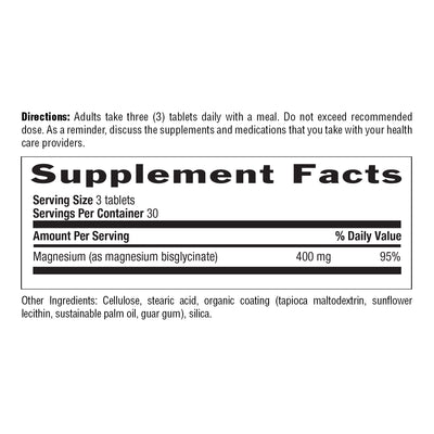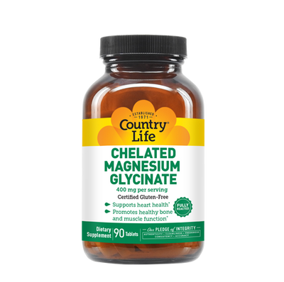 Country Life 400mg Chelated Magnesium Glycinate 90Tablets Supplement