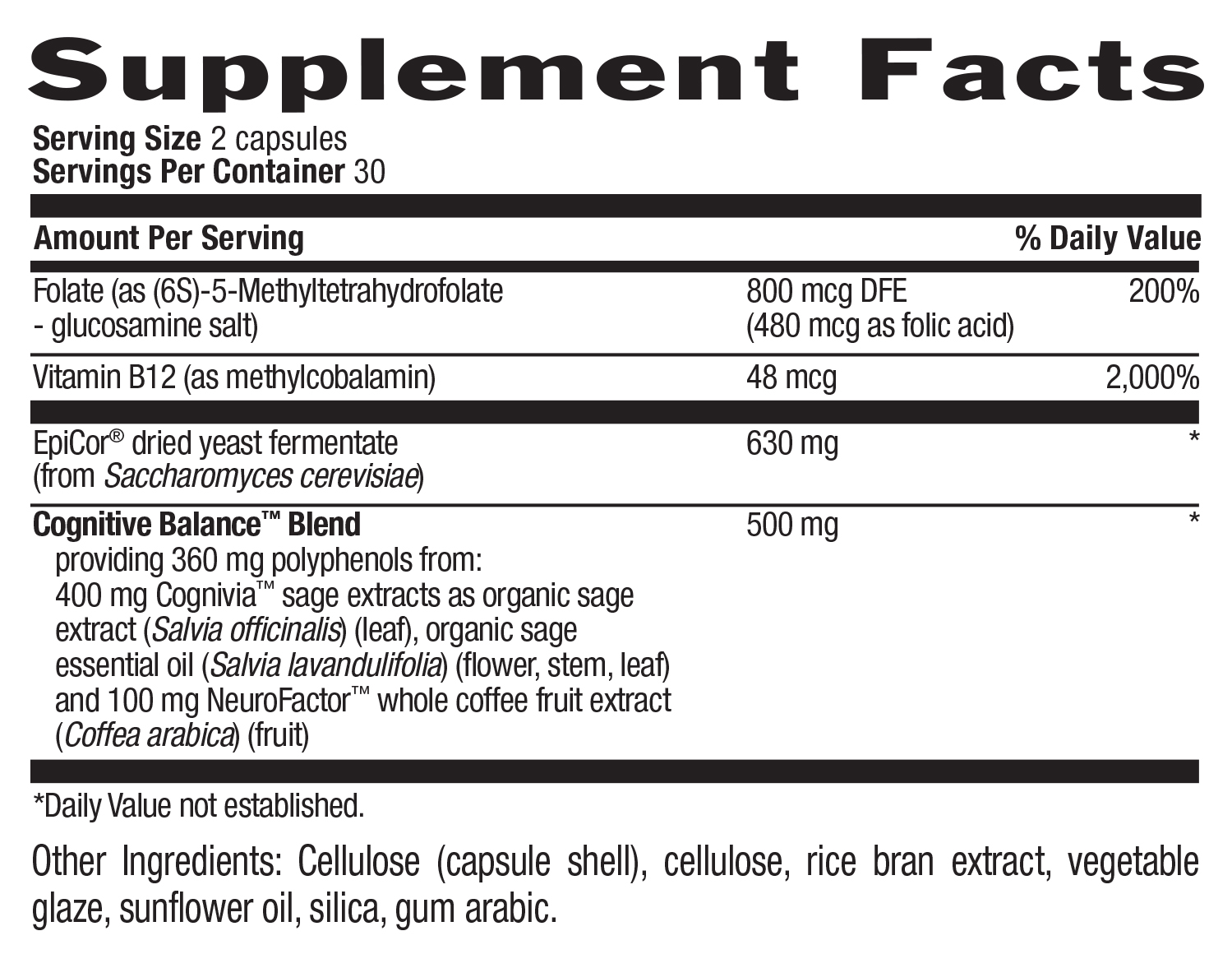 ** Cognivia™ is a plant-based ingredient derived from sage leaf and shown to support word recall and memory.