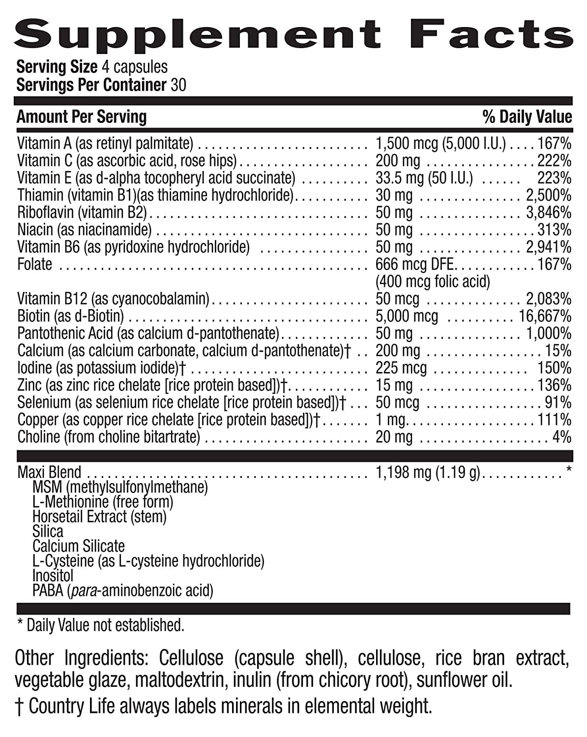 Country Life Maxi Hair Plus Biotin 120 Capsules Supplement
