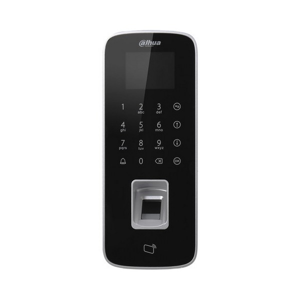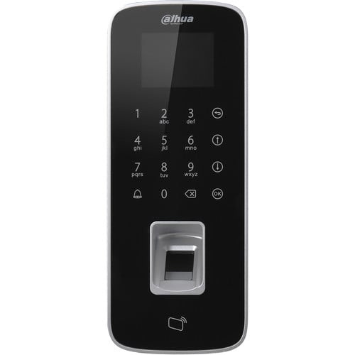 The Standalone Waterproof Fingerprint Door Controller from Dahua Technology supports MIFARE cards, passwords, fingerprints, or a combination for use as entry credentials. The controller features a touch keypad, an LCD display, and Wiegand or RS-485 interface. It supports up to 30,000 cards, 150,000 events, and 3000 fingerprints. The fingerprint controller is IP65 rated for outdoor use.