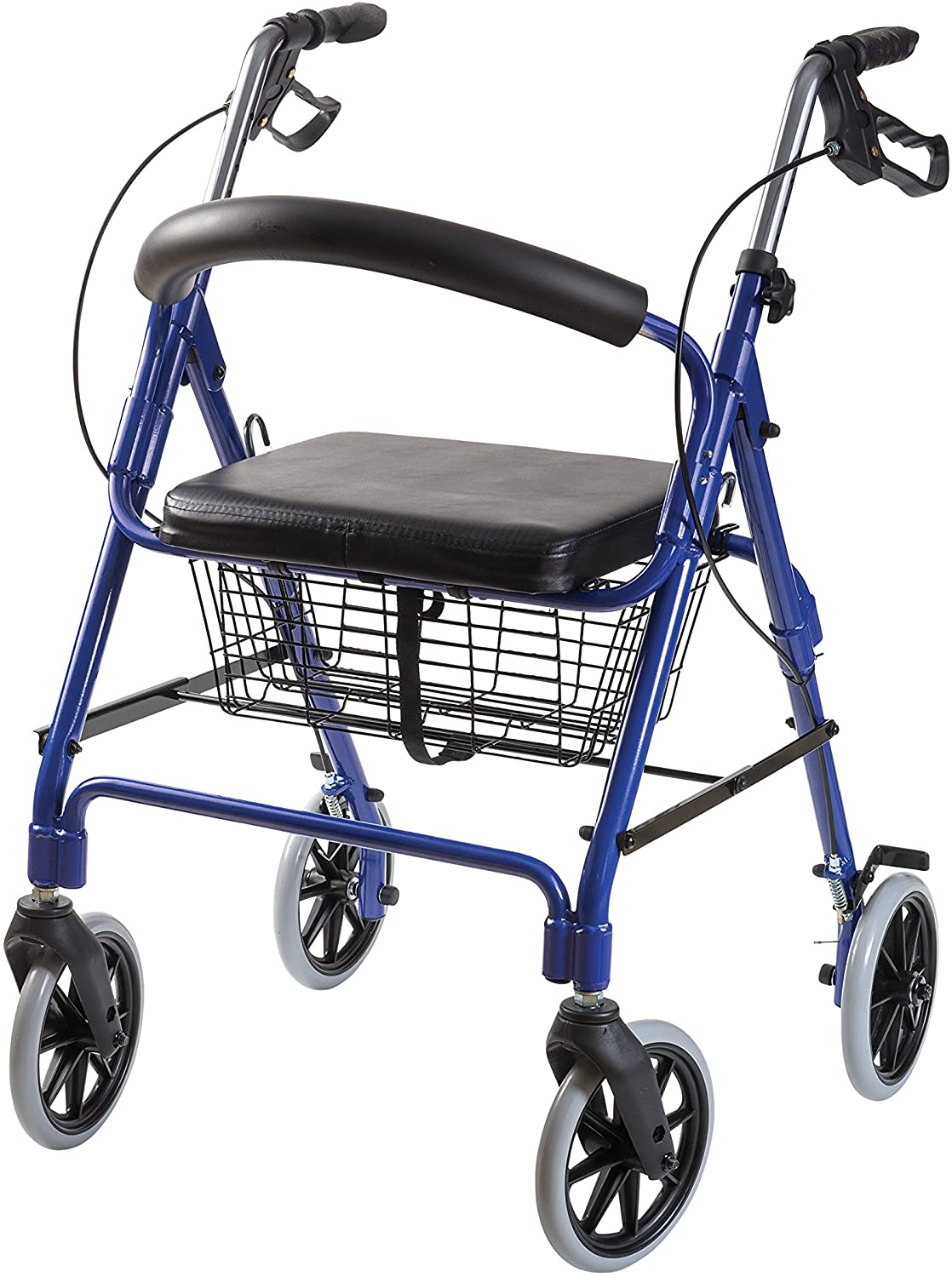 Dayang Medical Light Weight All Terrain Rollator With Seat, this 4 wheel rollator’s frame is made of powder coated steel which is sturdy and reliable.