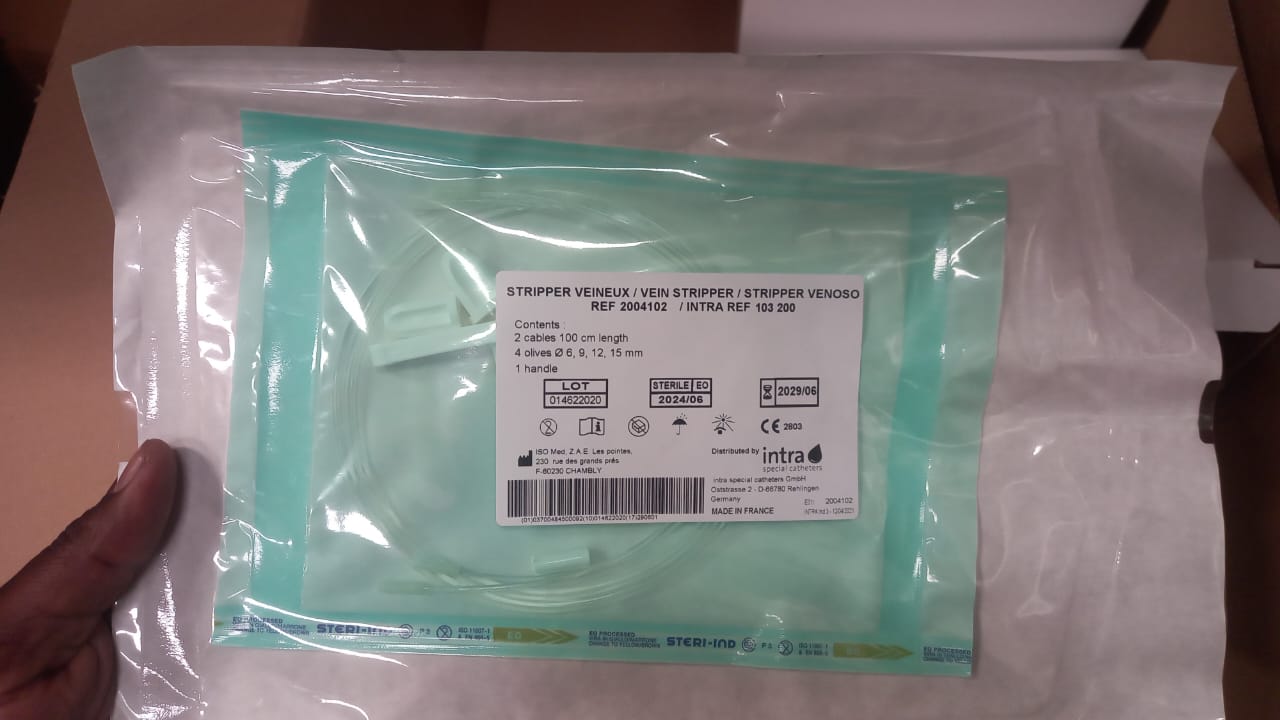 The vein stripper may be provided with four various olives of 6, 9, 12, 15 mm diameter. Thus stripping varices of different sizes will be possible with one single instrument which means cost reducing.