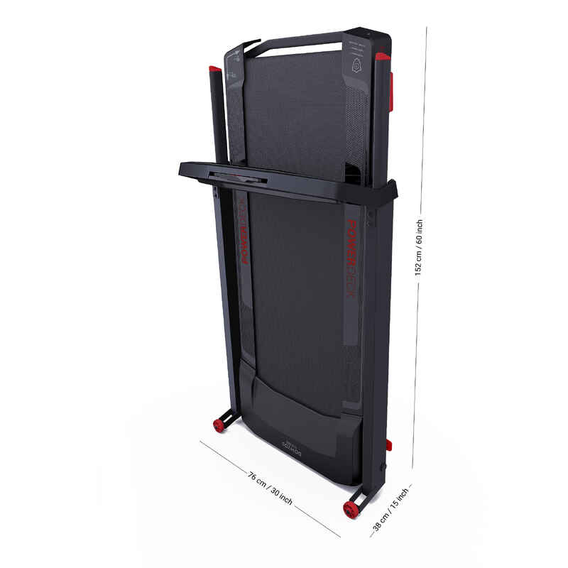 The RUN100E treadmill was designed to combine high performance when in use and easy storage when not in use.