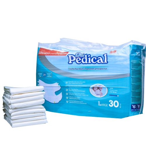 Dr Pedical Adult diapers make patients feel safe and comfortable with its high absorbency power and soft textile surface. The unique design and structure of the diapers provides quick absorption of liquids, ensuring maximum dryness while keeping your skin damp-free. It makes the patients with urinary incontinence problem feel confident thanks to its high absorbing capacity.