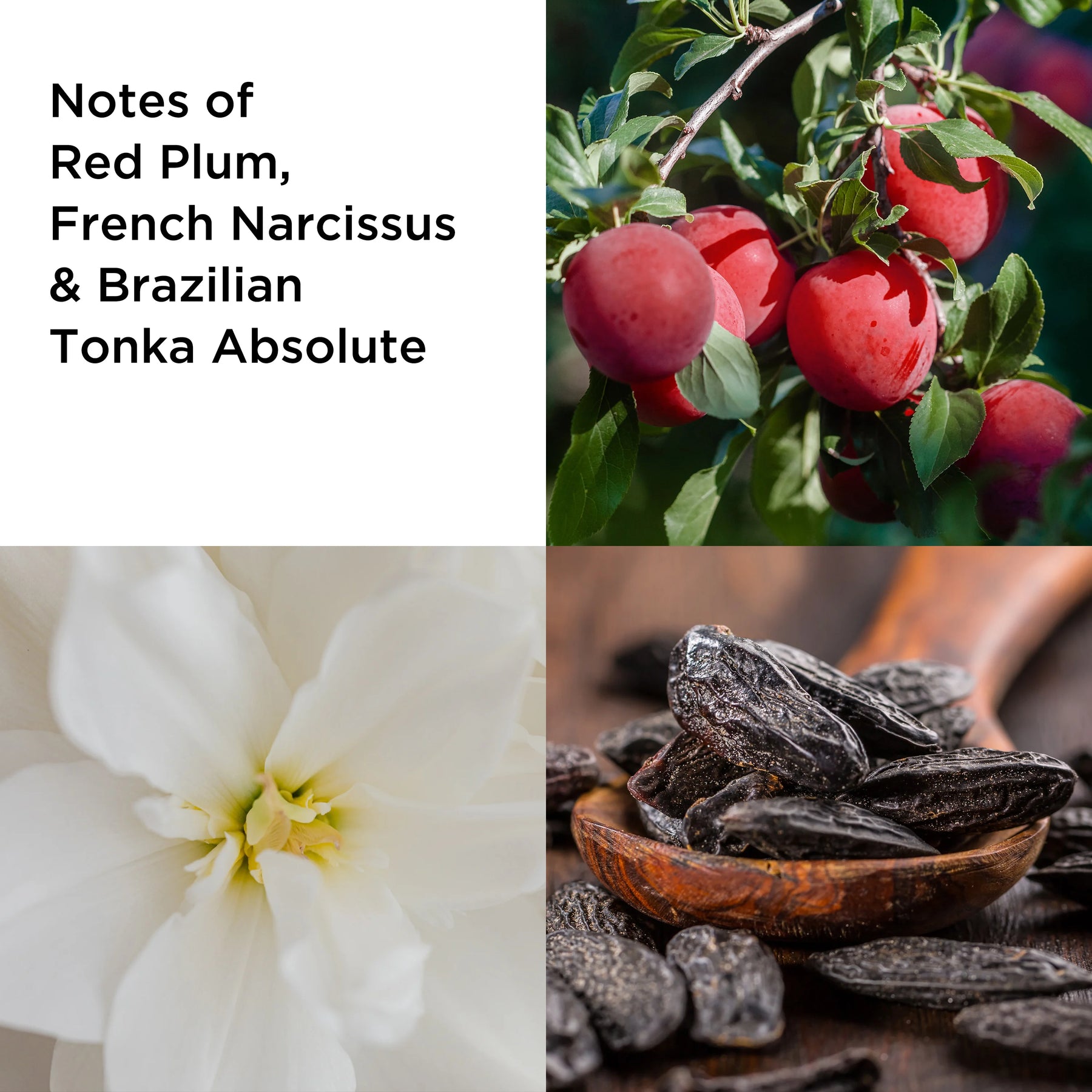A heart of jasmine, rose water and French narcissus follows before the scent deepens to a finish of cashmere woods and Tahitian vanilla bourbon.