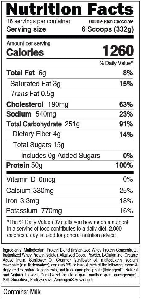 Stacked Protein Gainer includes a total of 26g EAAs from all 9 essential amino acids and has one of the highest percentages of BCAAs available at 12g per serving. BCAAs provide an additional fuel source during training for working muscle. As the body uses up its stored glycogen for energy, BCAAs kick in as an energy source during prolonged exercise. These BCAAs cannot be made by the body and must be consumed through food or supplements. They provide the building blocks of building more muscle in combination with the carbohydrates and calories to build serious mass.