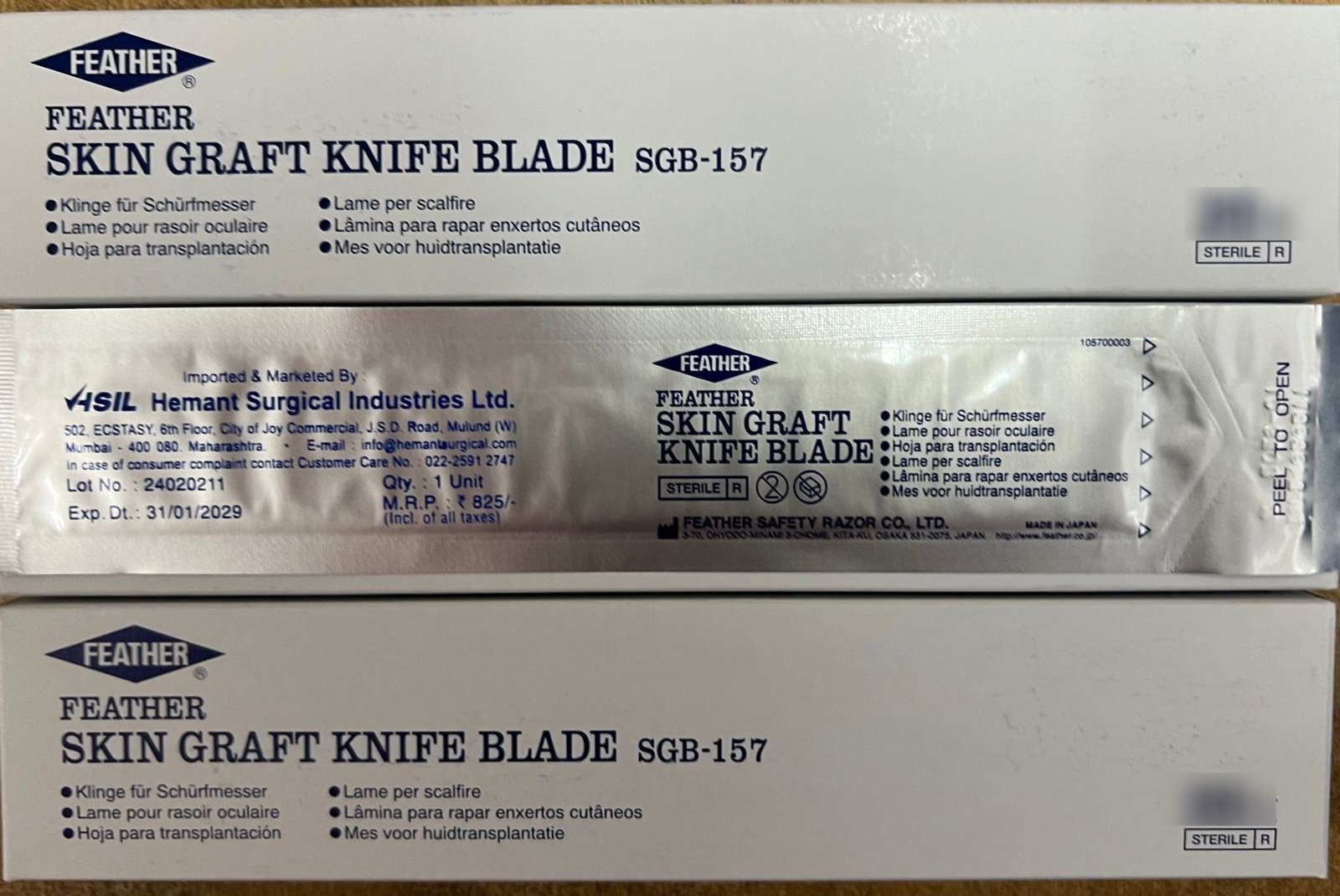 Feather disposable skin grafting blade is made of stainless steel.