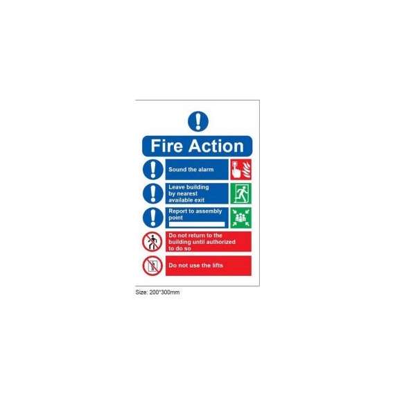 Fire Action with Contact Information of Emergency Service Sign
