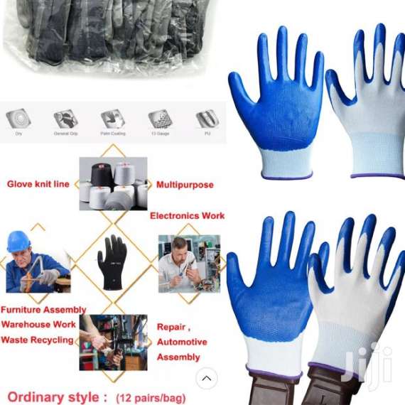 A Pair of nylon safety garden gloves, nitrile coated work gloves