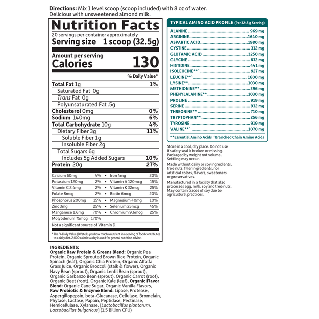 Garden of Life 651g RAW Protein & greens Lightly Sweet Powder