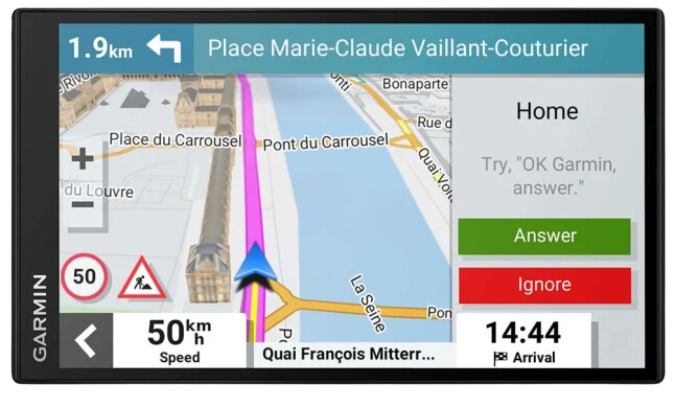 Need directions? Just say the word. Garmin DriveSmart responds to your spoken requests and then navigates to wherever you need to go. (Voice Assist is available in English, German, Italian, Spanish, Danish, Swedish, Dutch).