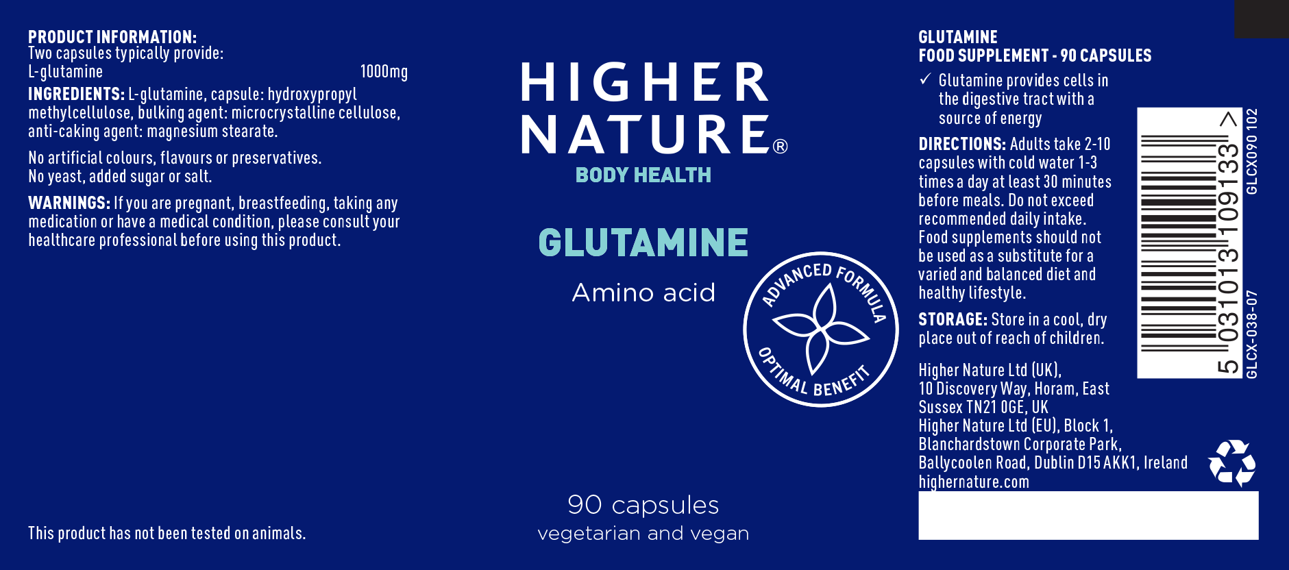 Higher Nature 500mg Glutamine Amino 90 Capsules Supplement