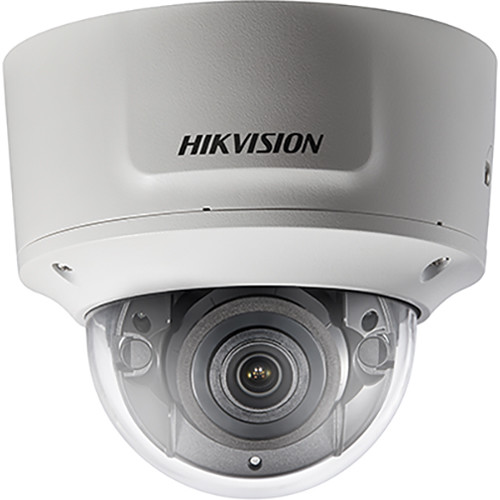 The DS-2CD2745FWD-IZS 4MP Outdoor Network Dome Camera from Hikvision uses a 1/2.5" progressive scan CMOS sensor to capture 2688 x 1520 resolution video at 30 fps. IR LEDs provide up to 100' of night vision. The camera's 2.8-12mm motorized varifocal lens delivers a 114-32° horizontal field of view. Two-way audio is possible thanks to an audio input and output. An onboard memory card slot accepts microSD/SDHC/SDXC cards up to 128GB (available separately). Integrated PoE technology simplifies connectivity by enabling the transfer of power and data through a single cable.