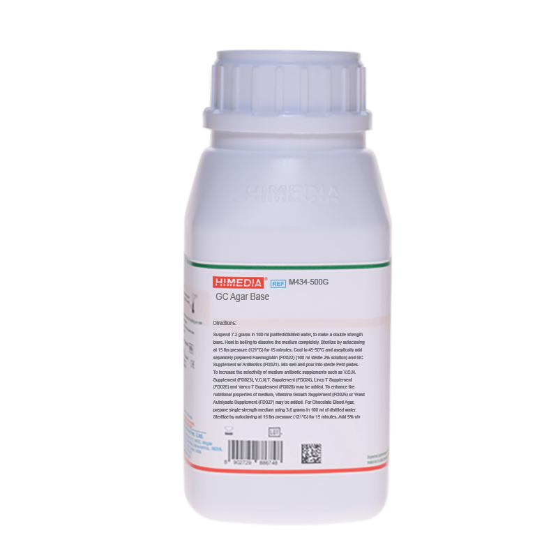 GC Agar Base is recommended for selective isolation and cultivation of Gonococci. Addition of blood and other supplements makes media selective for the growth of gonococci. The growth of Gonococci spp. grows luxurinatly on this media. Various essential growth such as X factor from haemoglobin and yeast autolysate is added to favours the growth of Haemophilus organism. Various selective supplements are added to specifically isolate organism such as gonococci, streptococci and other Neisseria species.