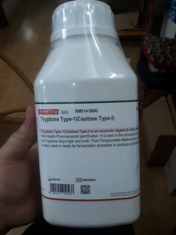 Tryptone Type-1 (Casitose Type-I) is an enzymatic digest of milk protein, very rich in amino nitrogen that meets Pharmacopeial specification. It is used in the production of Sterility Testing Media such as Tryptone Soya Agar and broth, Fluid Thioglycollate Medium etc, and various Diagnostic Media. It is also used in media for fermentation processes to produce antibiotics and toxins.It is equivalent to Casein Enzyme Hydrolysate Type I.