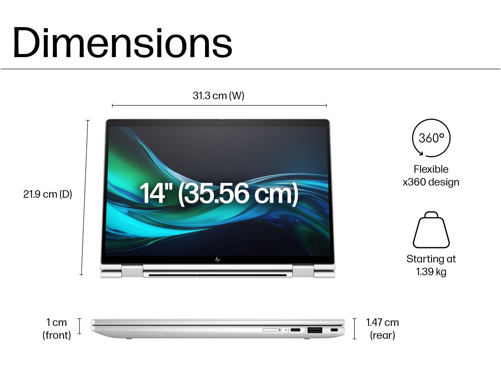 14" diagonal, WUXGA (1920 x 1200), touch, IPS, anti-glare, Corning Gorilla Glass 7, 400 nits, 100% sRGB with HP Eye Ease