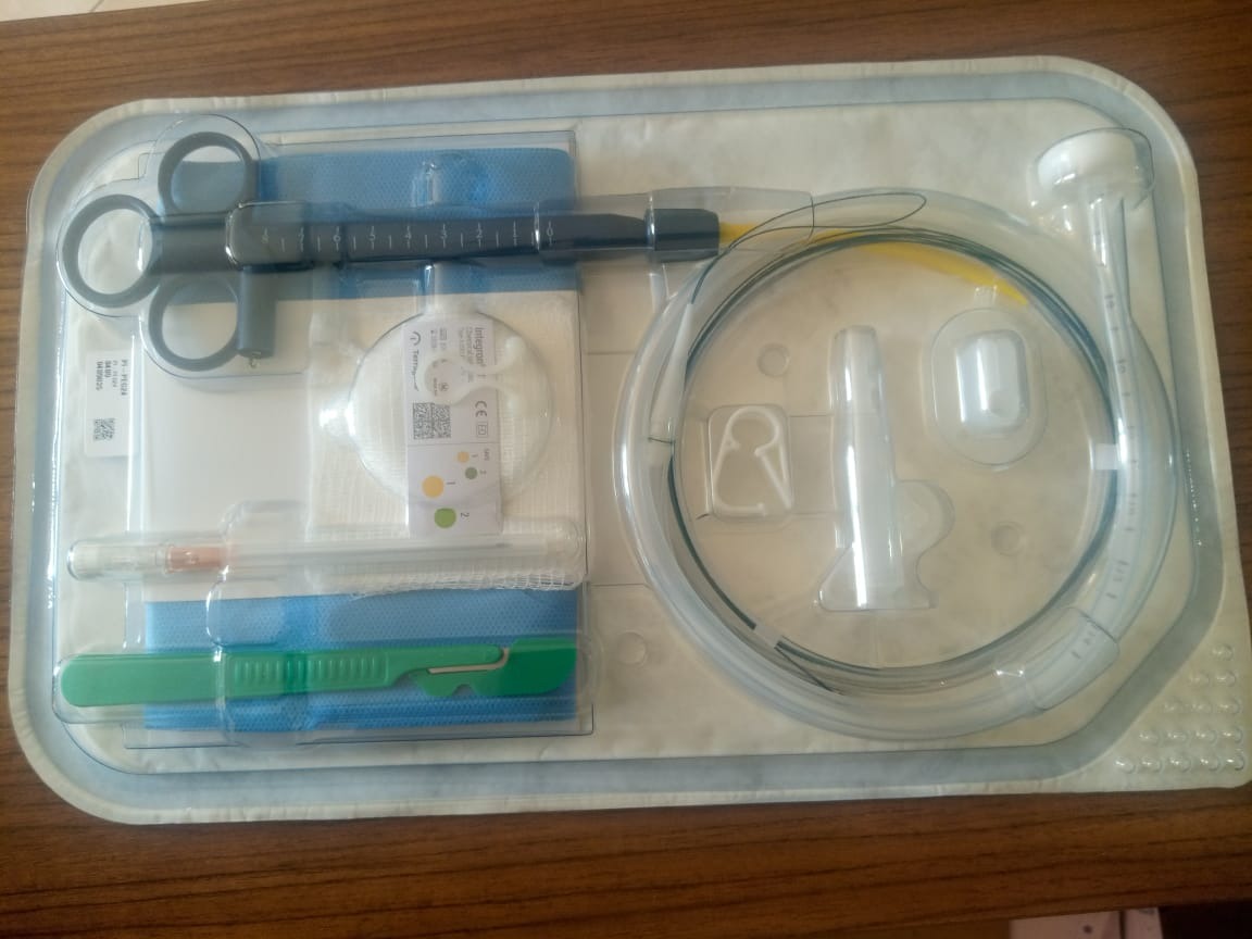 Silicone Catheter graded every 01 centimeter, retention disk made in radiopaque silicone with suitable form and rigidity to safely anchor the catheter. External Support allows to angle the catheter in 90° for better accommodation of catheter and more comfort to patient.