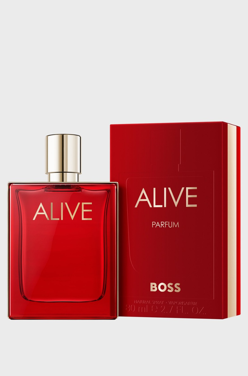 An 80ml bottle of BOSS Alive eau de parfum. BOSS Alive is an invitation to live life to its fullest, featuring top notes of sparkling apple and plum with a feminine heart of jasmine sambac, while the contrasting base fuses woody notes with magnetic vanilla absolute. Leave a trail of positive energy with this contemporary and empowering fragrance.