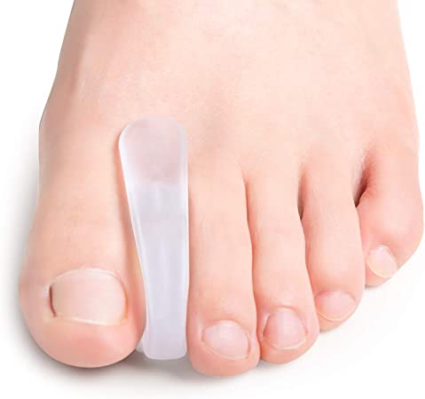 The toe retractor is made of medical grade silicone material. The silicone is soft, pliable and provide long lasting support for the foot. It's friendly to the skin and odor free. The toe retractor are especially effective at relieving pain caused by corns, crooked and/or overlapping toes, pinched toes and cramped toes. These soft silicone toe separators gently ease toes apart to relieve toe irritations. Toe separators also absorb pressure and friction to end pinching and cramping. In addition, toe separators are anatomically shaped to fit comfortably. Virtually transparent, they are suitable even for open toe shoes/sandals.