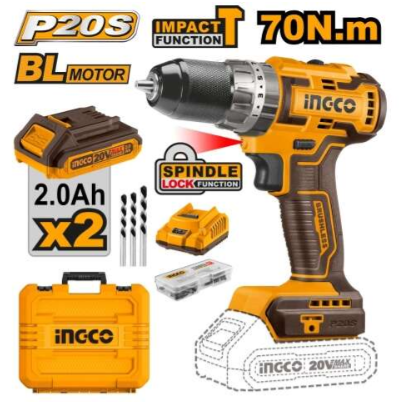 Ingco CIDLI20605 20V 70Nm LI-ION Cordless Brushless Impact Drill