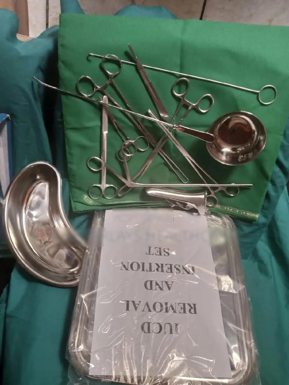 Gréen towel Mosquito forceps Sponge holding Uterine sounds Kidney dish Scissors str Cuscos Vullsellum forceps Tray Bp handle Alligator forceps