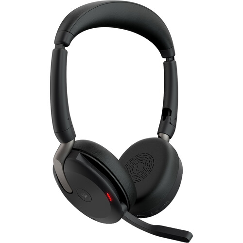 The Jabra Evolve2 65 Flex USB-A MS Stereo Headset with wireless charging have Hybrid Active Noise Cancellation and a wireless range of up to 100'. Talk time is up to 20 hours on full 120-minute charge. A built-in busy light helps prevent interruptions, by signaling tothose around you when you're on a call.