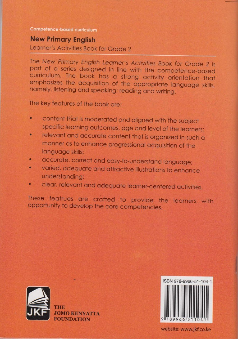 The New Primary English Learner's Activities Book for Grade 2 is part of a series designed in line with the competency-based curriculum. The book has a strong activity orientation that emphasizes the acquisition of the appropriate language skills, namely, listening and speaking; reading and writing.