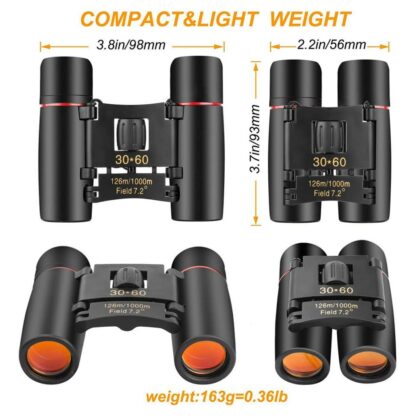 30×60 optical binoculars with a magnification of 30 times and an objective lens diameter of 60 mm. More importantly, it has a large field of