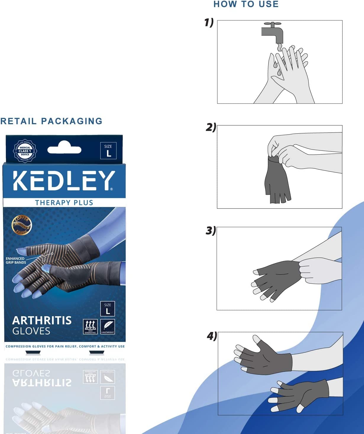 The Kedley Arthritis gloves are designed to provide compression, help circulation and reduce inflammation around the joints to relieve arthritis pain in the knuckles, fingers and wrists.